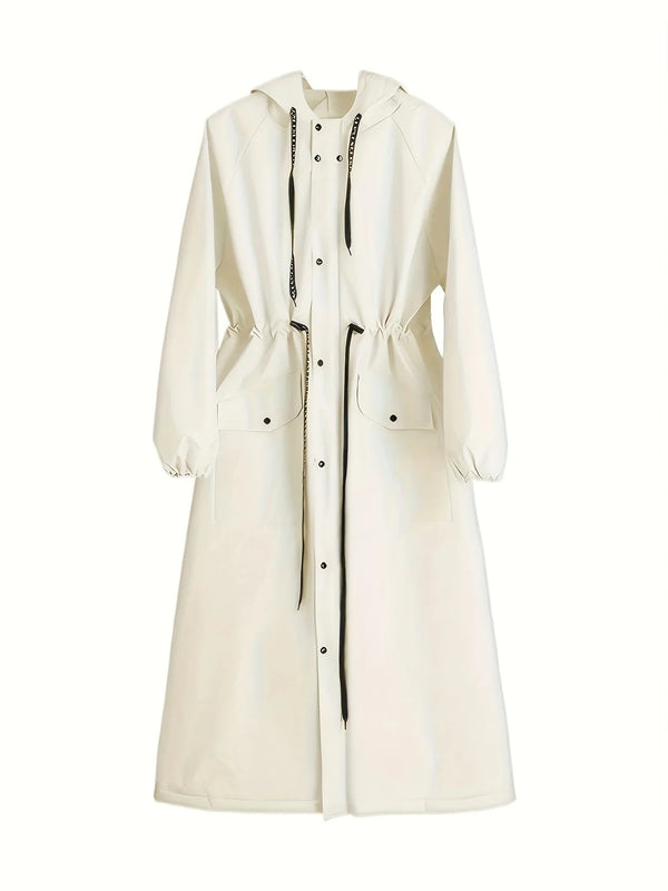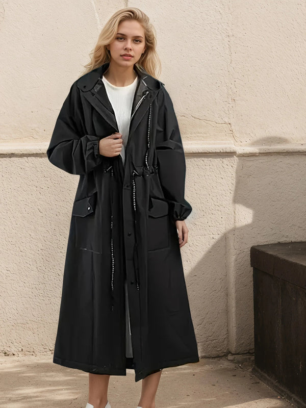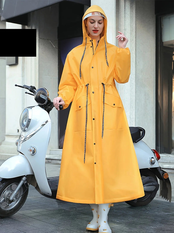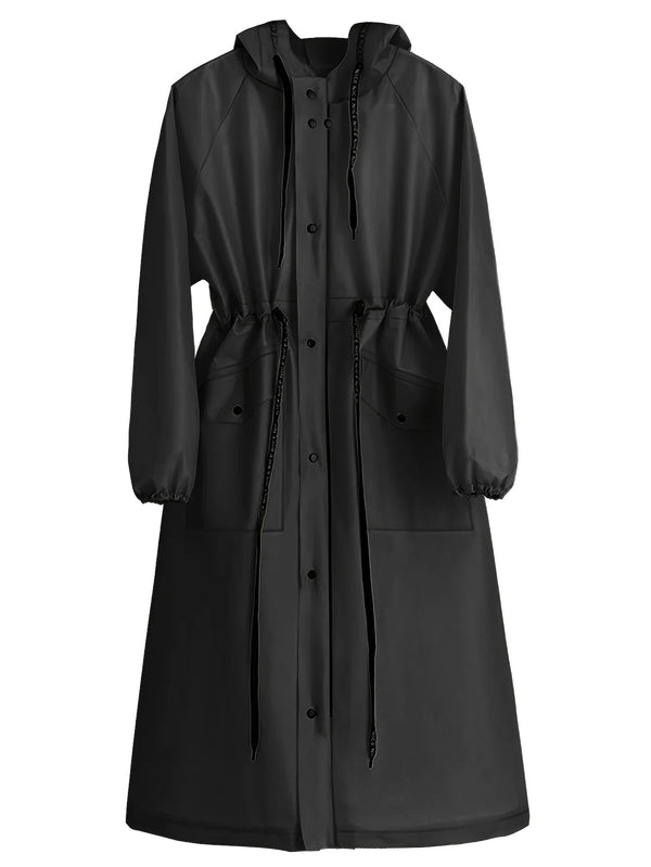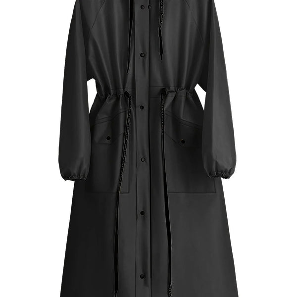 Zamiast chować się przed każdą kroplą, wyjdź jej naprzeciw w długim, wodoodpornym płaszczu, który łączy praktyczność z elegancją. Ten kobiecy płaszcz przeciwdeszczowy o prostym kroju i klasycznym kolorze chroni przed deszczem od kaptura aż po kolana. Doskonały zarówno na spacery, do pracy, jak i na codzienne wyjścia po mieście.