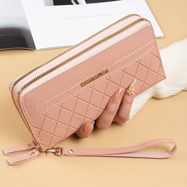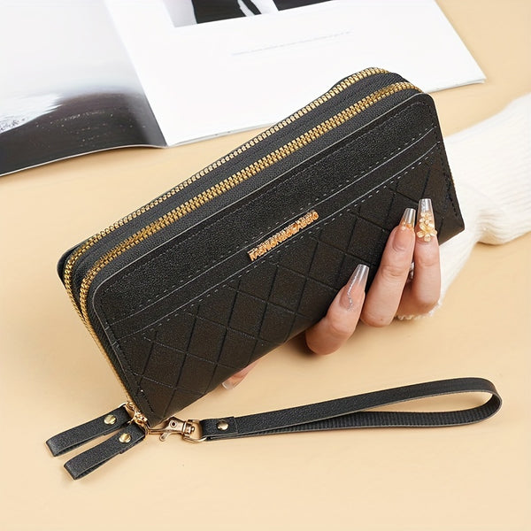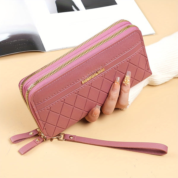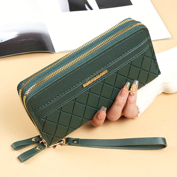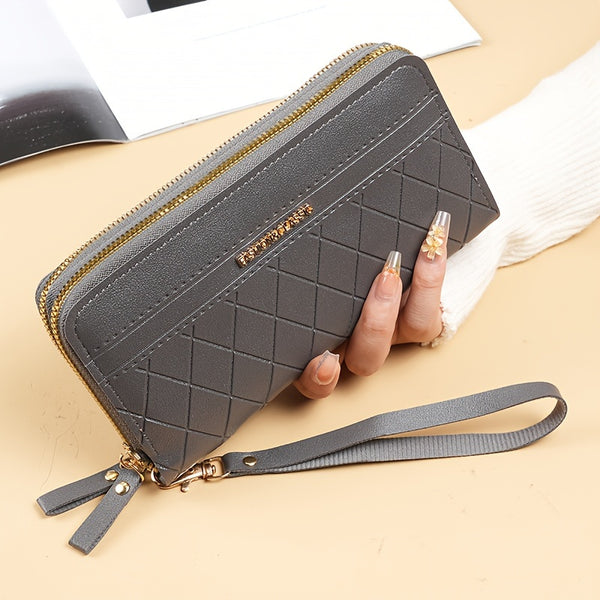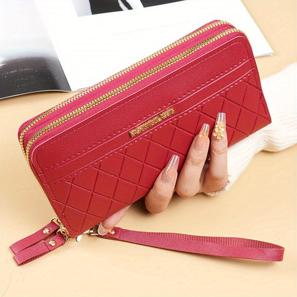 To nie jest zwykły portfel. To elegancka torba typu clutch, która łączy funkcjonalność z modnym designem. Geometryczny wzór w stylu argyle przyciąga spojrzenia, a dwa zamki i poręczny uchwyt na nadgarstek sprawiają, że masz wszystko pod kontrolą – telefon, monety, karty, dokumenty. Niezależnie od tego, czy wychodzisz na szybkie zakupy, czy potrzebujesz stylowego dodatku do wieczornej stylizacji – ten portfel jest gotowy.