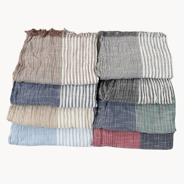 Ten stylowy szal to połączenie wygody, naturalnych materiałów i ponadczasowego designu. Wykonany z miękkiej mieszanki bawełny i lnu, zapewnia wyjątkową przewiewność oraz delikatne ciepło w chłodniejsze dni. Jego uniwersalny wygląd sprawia, że doskonale komponuje się zarówno z codziennymi, jak i eleganckimi stylizacjami.
