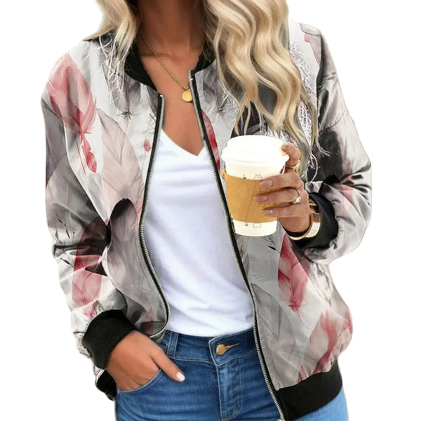 Bomberka damska | Casual kurtka z motywem botanicznym i zamkiem